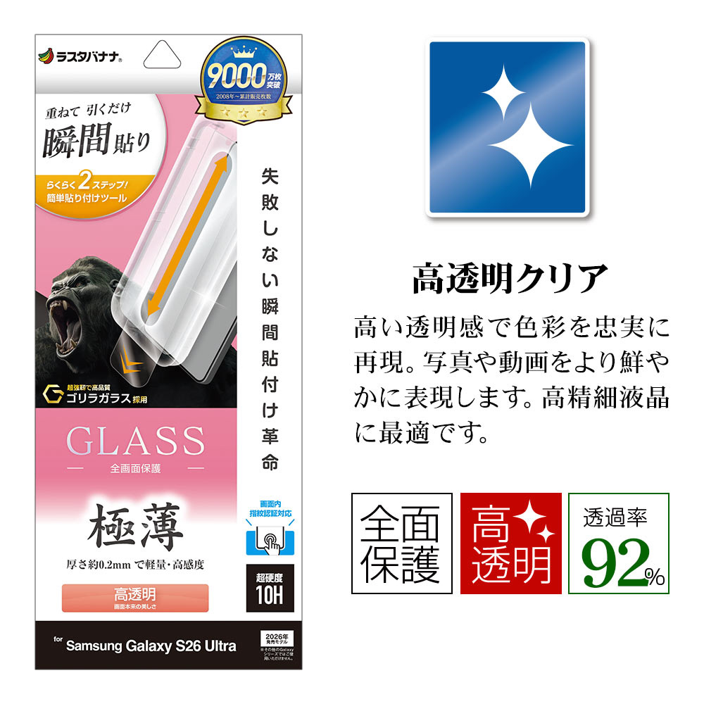 Galaxy S26 Ultra 貼付革命 ゴリラガラスフィルム 薄型光沢 クリア MTK5233GS26U