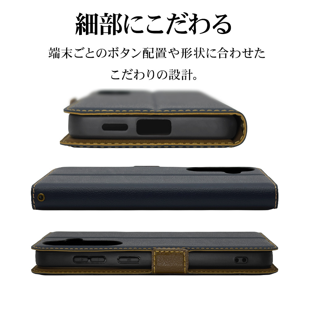 液晶画面側と背面側の両面を保護できる薄型で持ちやすい手帳型ケースです。