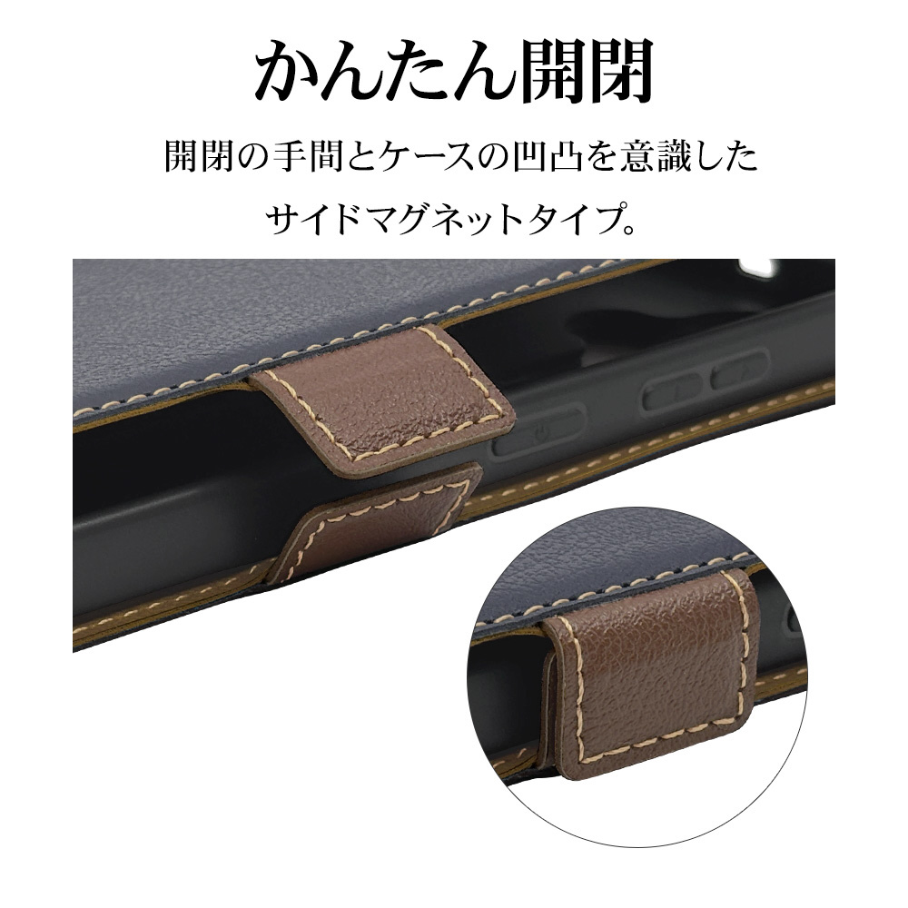 Galaxy S26+ 薄型手帳サイドマグネットケース NV×BR ネイビー×ブラウン 9318GS26PBSMNVB