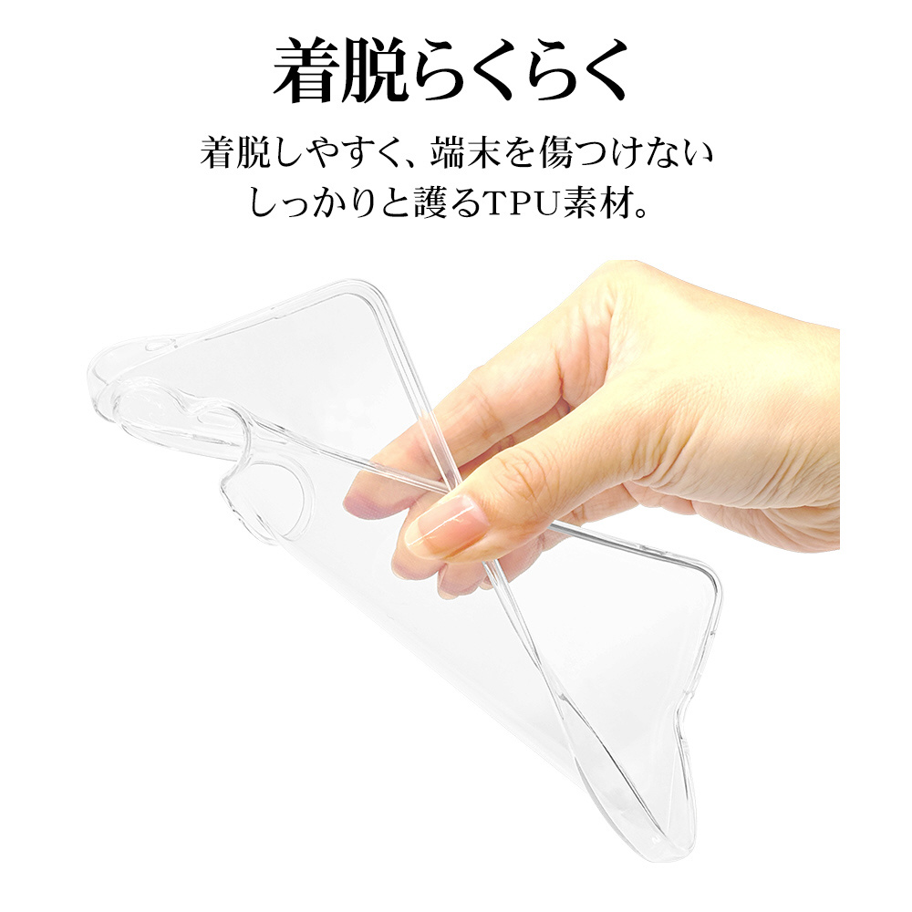 ●滑りにくく、しなやかなTPU素材で優しく端末を護ります。※衝撃吸収については、一般的なポリカーボネート製ケースと比較した自社検証結果で、無破損、無故障を保証するものではありません。