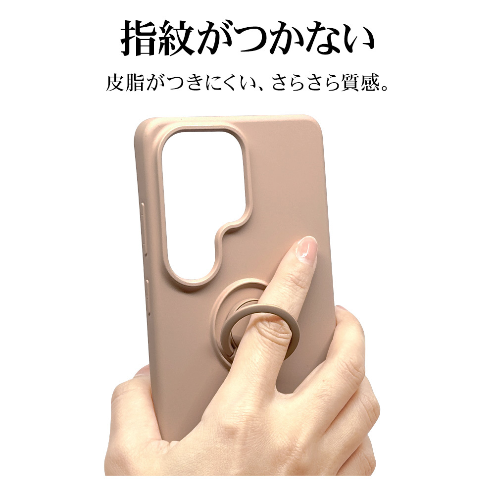 本製品はさらさら質感で指紋が付きにくいTPU素材の、落下防止リング付き背面ケースです。