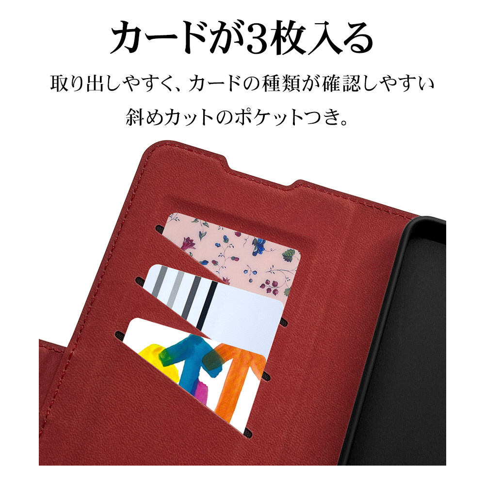 液晶画面側と背面側の両面を保護できる薄型で持ちやすい手帳型ケースです。