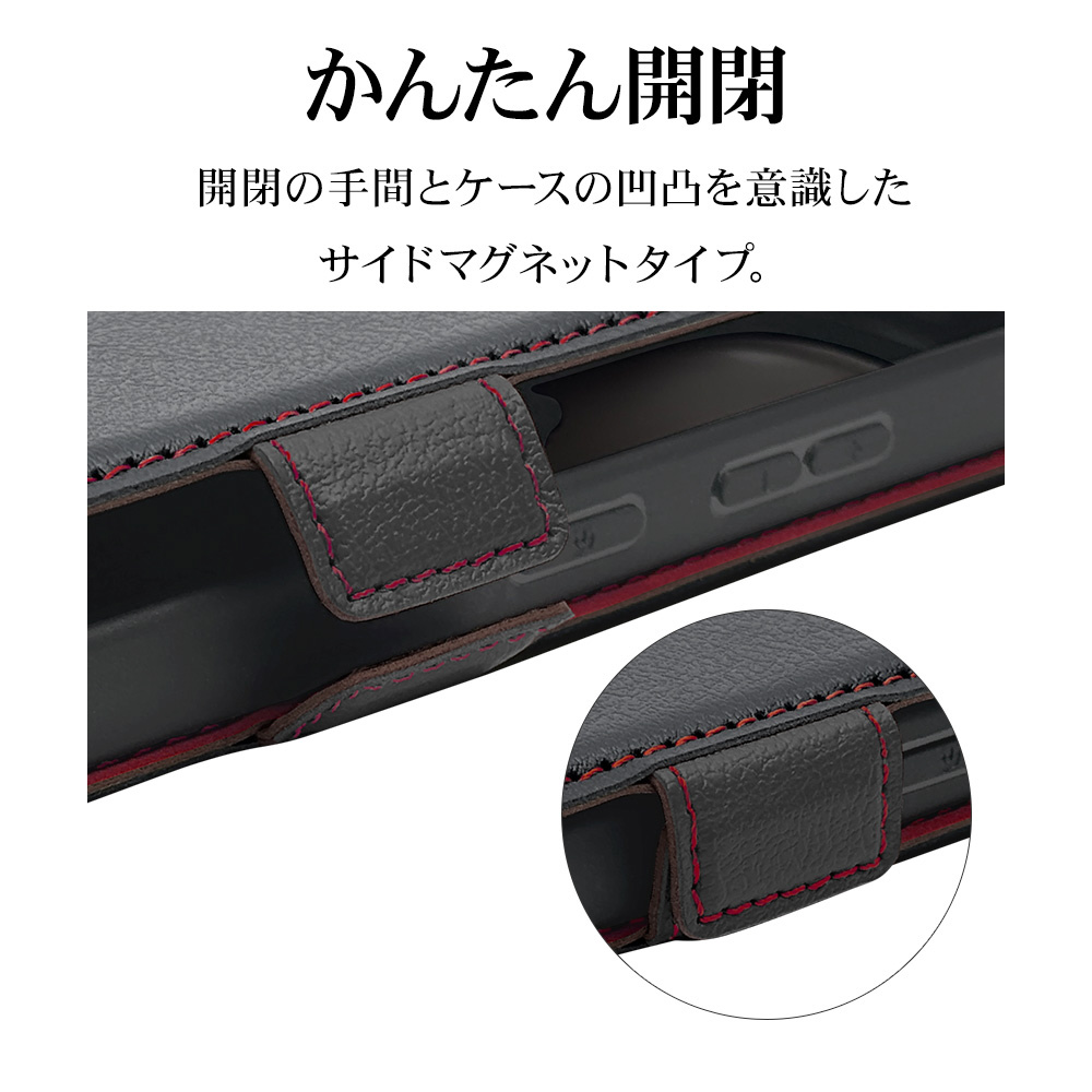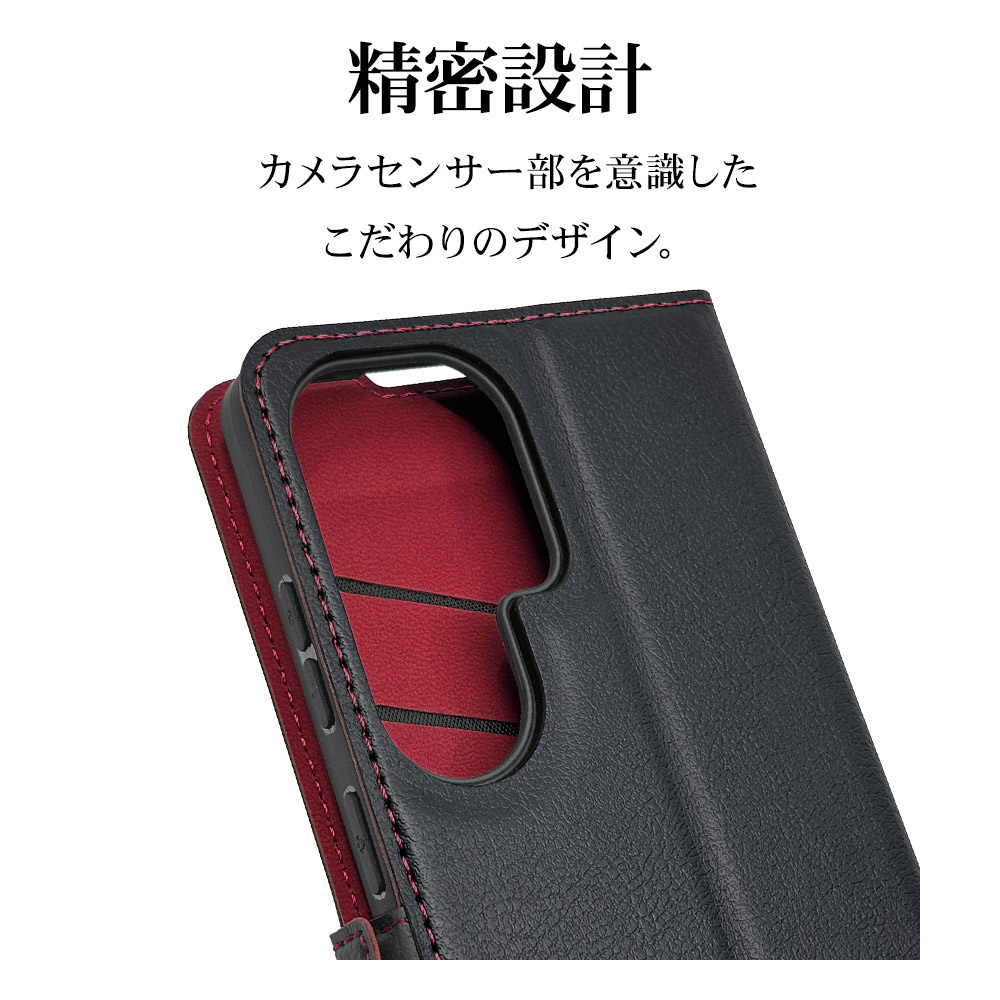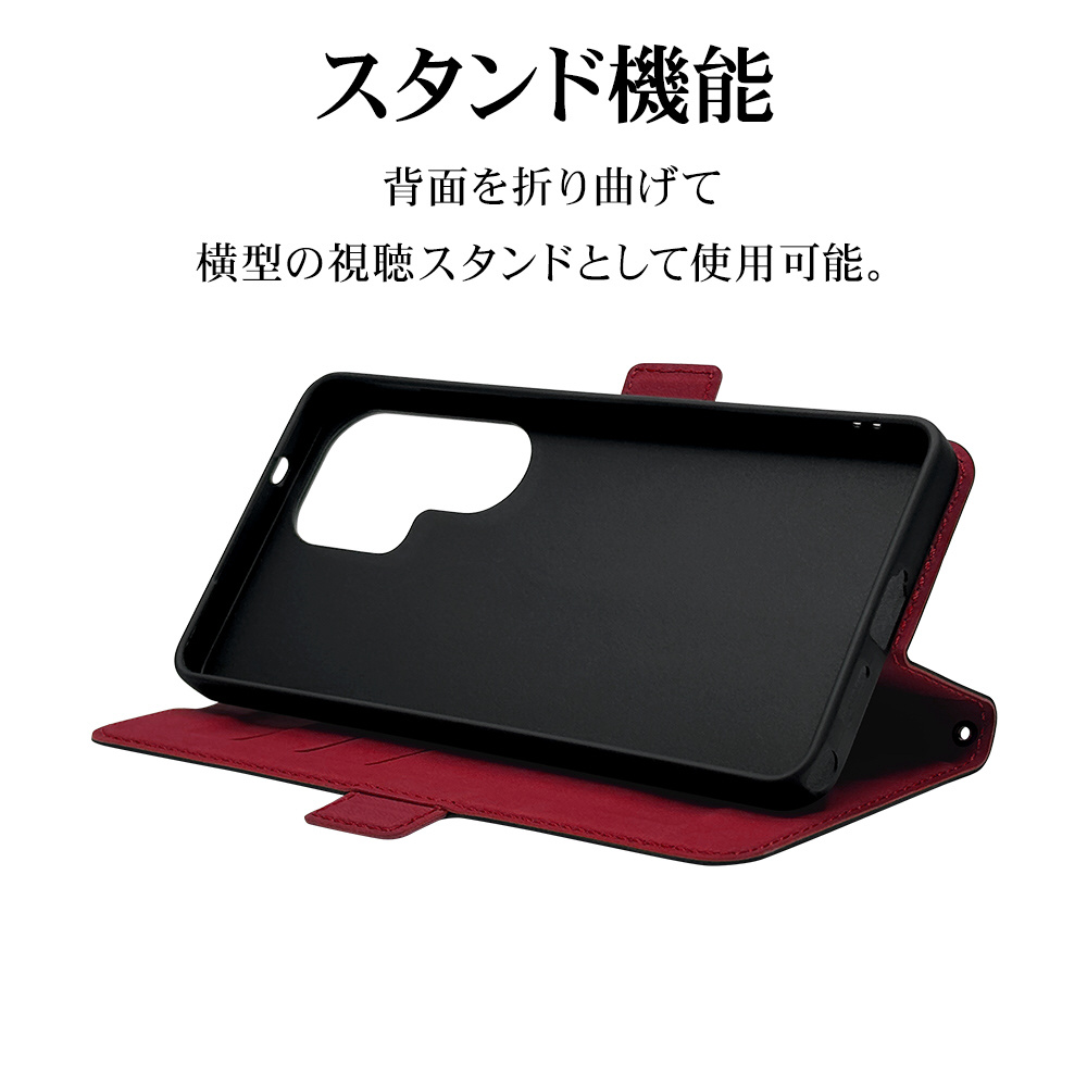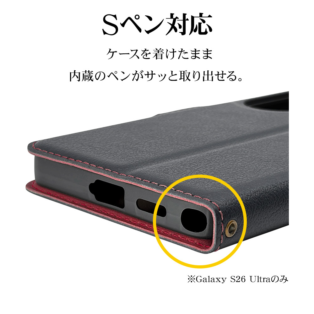 Galaxy S26 Ultra 薄型手帳サイドマグネットケース BK×RD