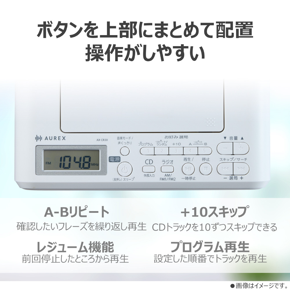 CDラジオ AUREX ホワイト AX-CR30(W) [ワイドFM対応 /ハイレゾ非対応 /Bluetooth非対応]