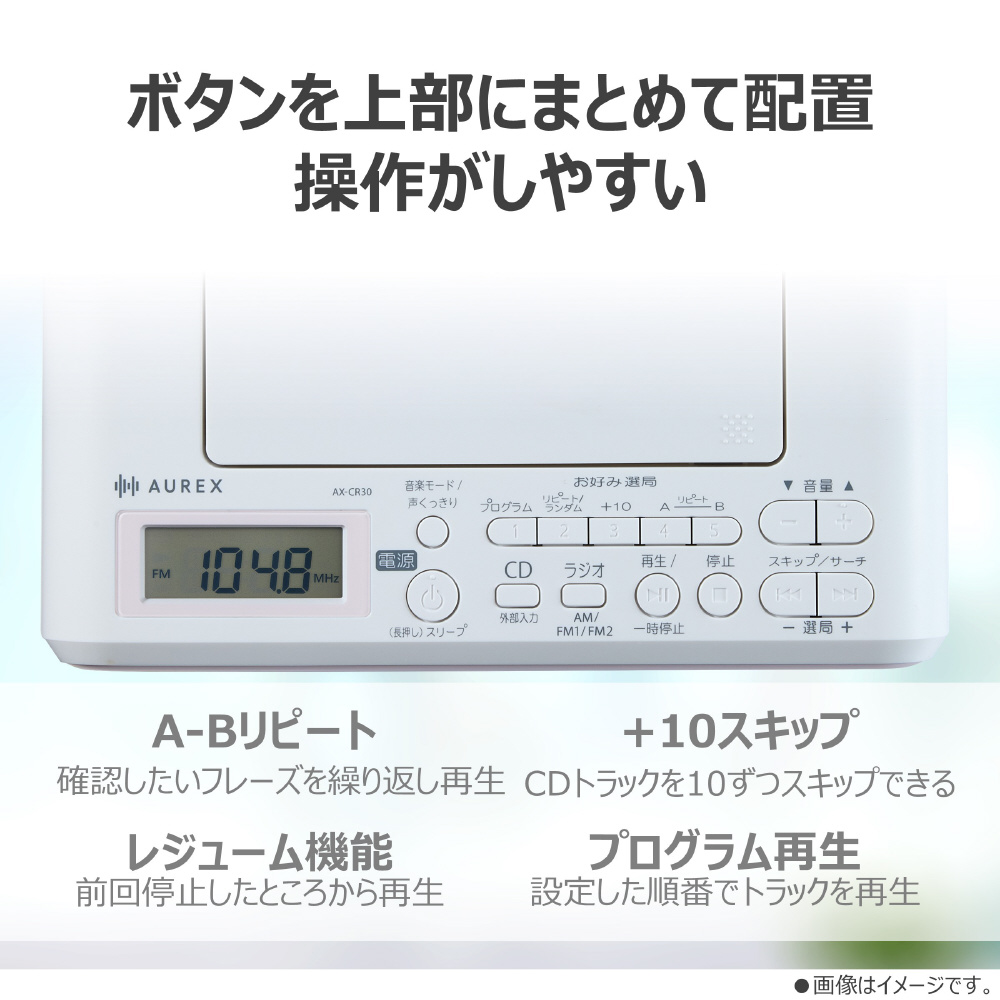 CDラジオ AUREX ピンク AX-CR30(P) [ワイドFM対応 /ハイレゾ非対応 /Bluetooth非対応]