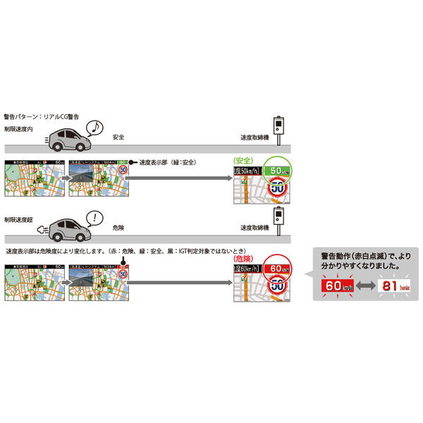 一般的にレーザー光の受信レベルが強い場合、自車位置から取締機の設置場所が近くなるので距離感などを把握できます。