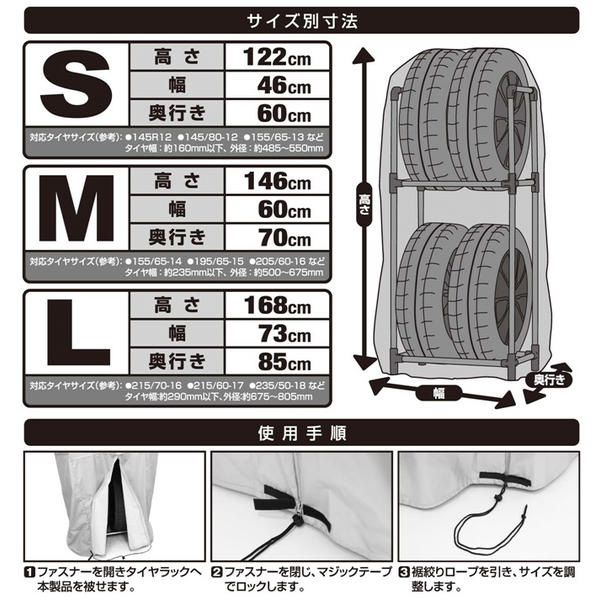 TRC01M タイヤラックカバー サイズ:M(厚織ポリエステルオックス使用)収納カバー寸法:高さ146cm×幅60cm×奥行70cm