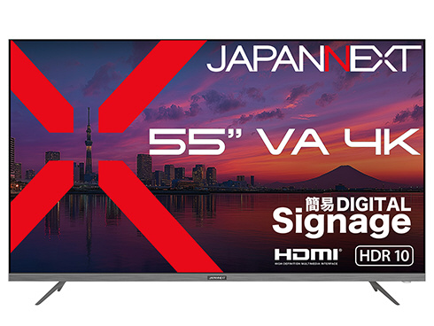 「【2年保証モデル】 JAPANNEXT 55インチ VAパネル搭載 4K(3840×2160)解像度 大型液晶モニター HDMI HDR ビデオ/音声入力 コンポーネント入力 オプティカル音声出力 オーディオ出力 USBメモリ再生対応 リモコン同梱」