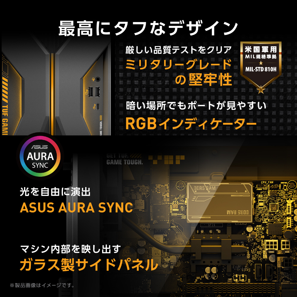 TM500はMIL-STD 810Hに準拠した厳しいテストをクリアしており、TUF Gamingを名乗るに欠かせない高い堅牢性と信頼性を万全に備えています。移動中の振動や、室内でも起こりうる気温の変化にも耐えられる屈強なボディで、コンポーネントを守り、安定した動作を長期間にわたり実現します。
