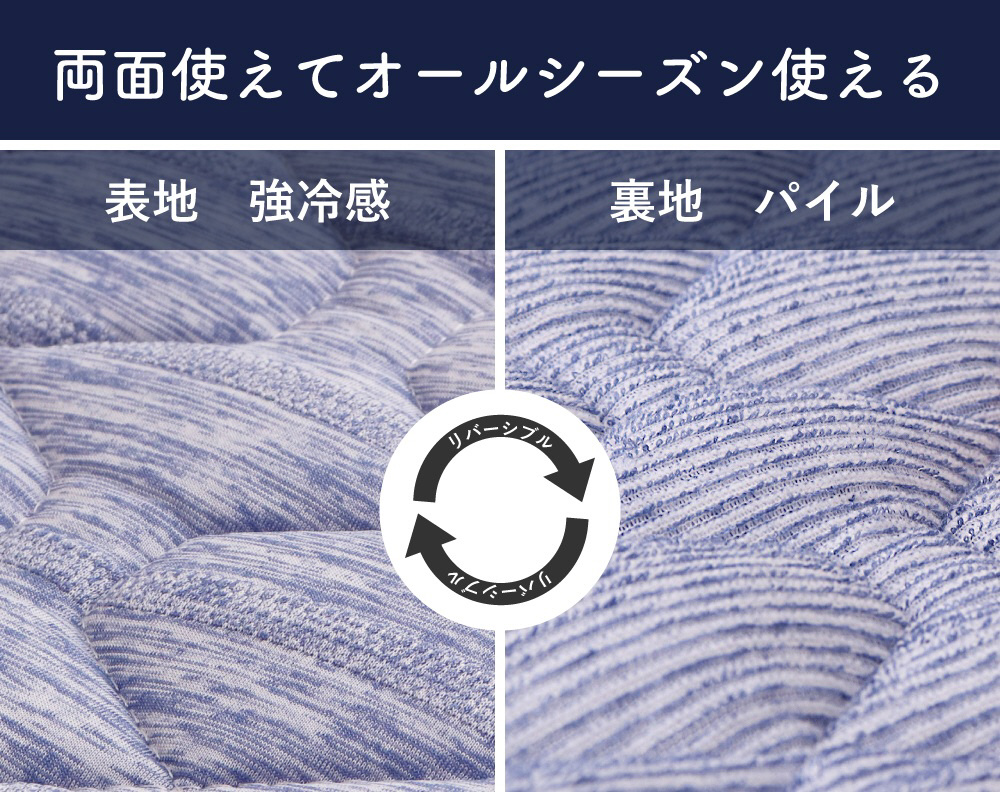 両面仕様で、1年中お使いいただける冷感敷パッド。