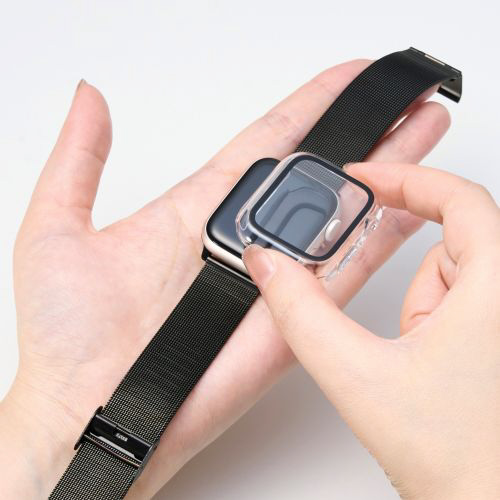 ポリカーボネート素材とガラスの2重構造で、Apple Watchの画面および側面部を保護します。