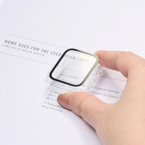 画面の視認性に優れる高透明なガラスとポリカーボネート樹脂で、端末を傷や汚れから守るApple Watch用フルカバーケースです。