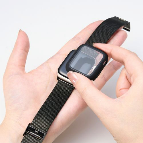 表面硬度10HのGorilla(R)ガラスと耐衝撃性の高いポリカーボネート素材の2重構造で、Apple Watchの画面および側面部を保護します。