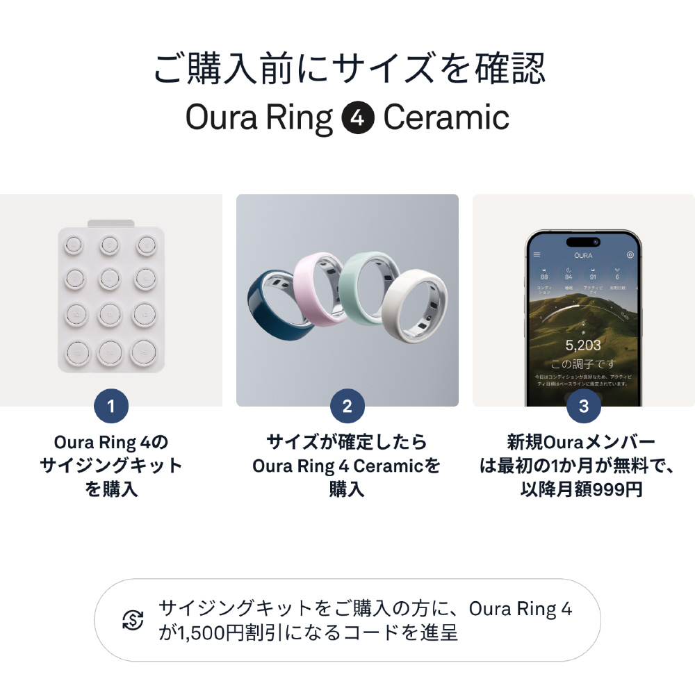 付属品 リングサイズの充電器/USB-Cケーブル/ 取扱説明書/1か月間の無料アプリメンバーシップ