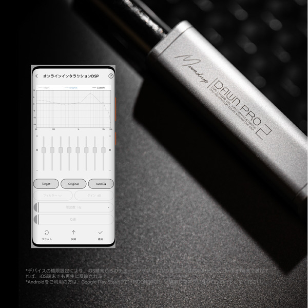 公式アプリを使えば、Dawn Pro 2の内蔵DSPパラメトリックEQをチューニングインターフェースでより正確かつ簡単にカスタマイズできます。フィルタータイプ、周波数ポイント、ゲイン、Q値などは自由に調整でき、さらに周波数特性データベースをチューニングの基準として利用できるため、使いやすさと精度がさらに向上します。
