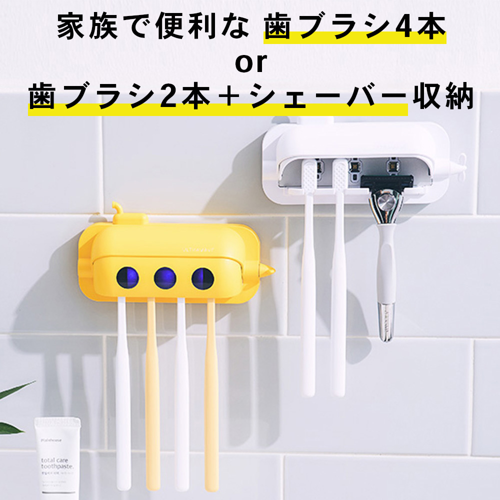 使用後の歯ブラシを3分で除菌 4本仕様の壁掛けタイプ