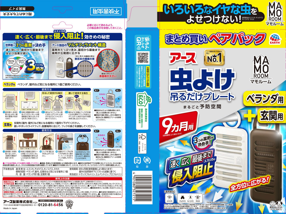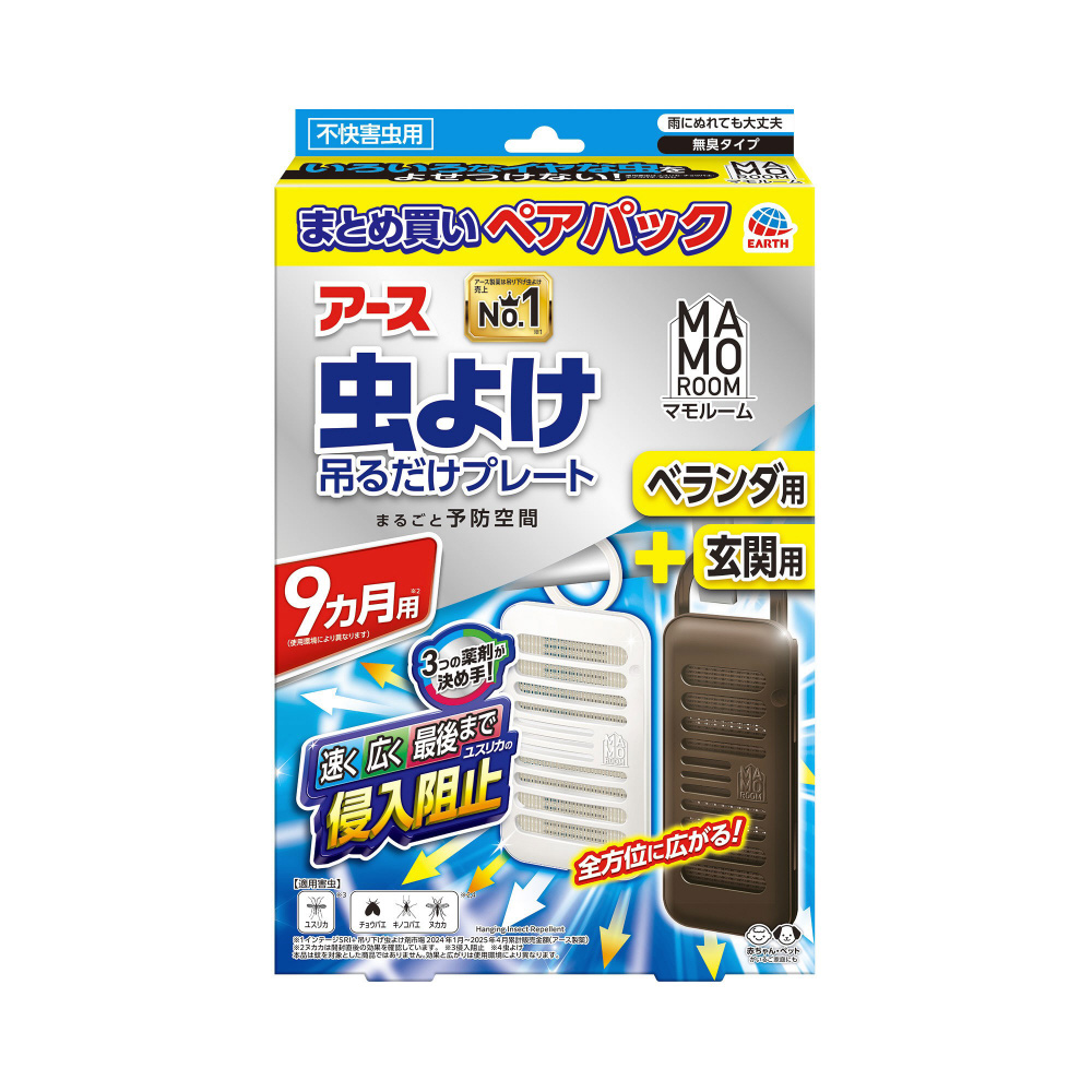 ●まとめ買いペアパック「マモルーム虫よけ吊るだけプレート9ヵ月用」と「マモルーム虫よけ吊るだけプレート玄関用9ヵ月用」