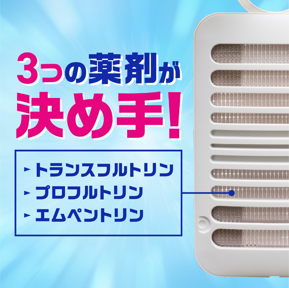 ・世界唯一(※有効成分の組み合わせ・自社調査(吊り下げ虫よけにおいて2025年4月現在))アースだけの3つの薬剤が決め手
