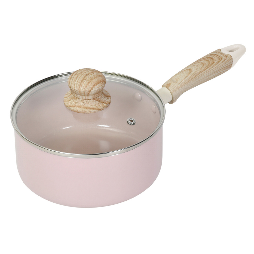 片手鍋 18cm ソースパン IH ガス火対応 ガラス蓋付 セラミック 軽量 セラミック毎日ポット ピンク NQ-436
