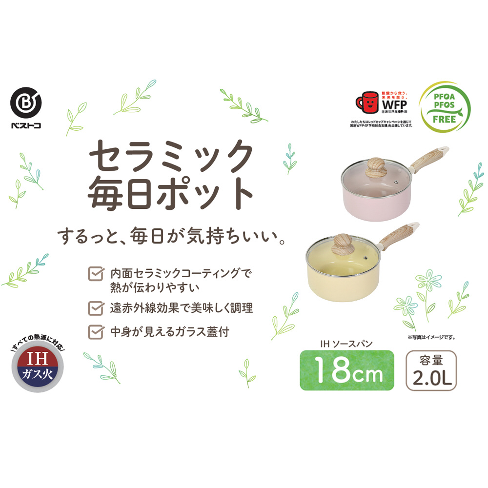 新生活にピッタリ!毎日使える内面セラミックフライパン&ポット。