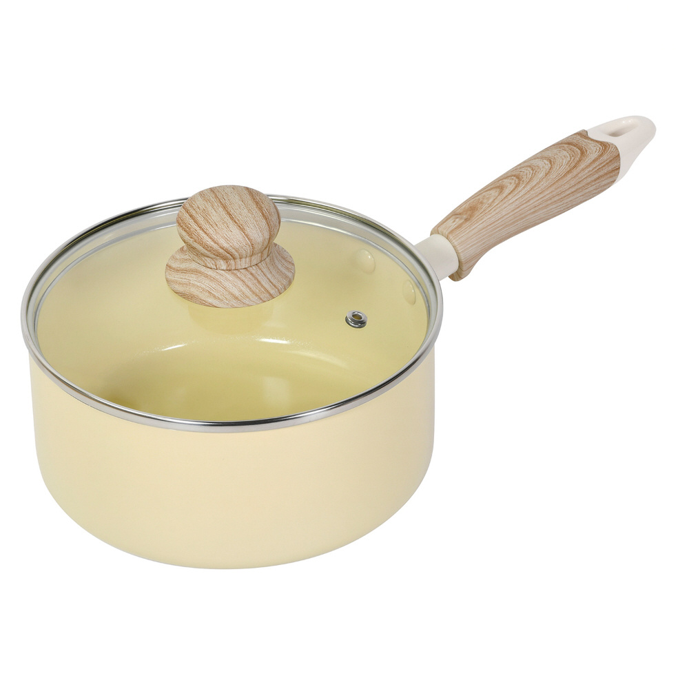 片手鍋 18cm ソースパン IH ガス火対応 ガラス蓋付 セラミック 軽量 セラミック毎日ポット カスタード NQ-443