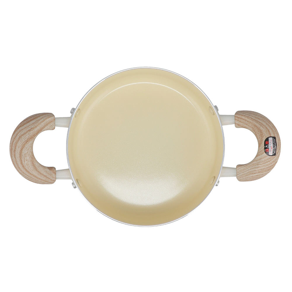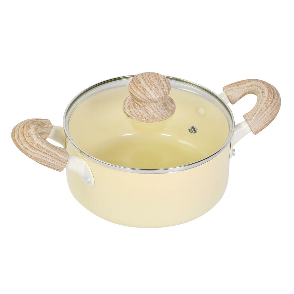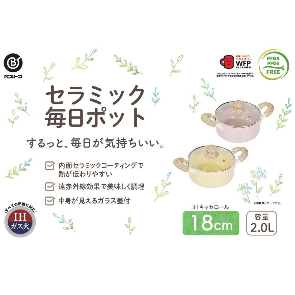 両手鍋 18cm キャセロール IH ガス火対応 ガラス蓋付 セラミック 軽量 セラミック毎日ポット カスタード NQ-444