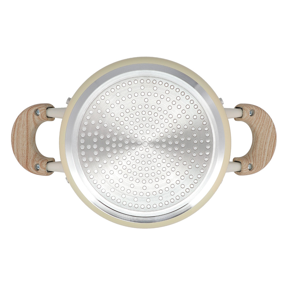 鍋つまみはころんとした可愛らしい形状の木目調デザインでやさしい印象をプラス。ハンドルとも相性抜群で、毎日の調理に自然に溶け込みます。