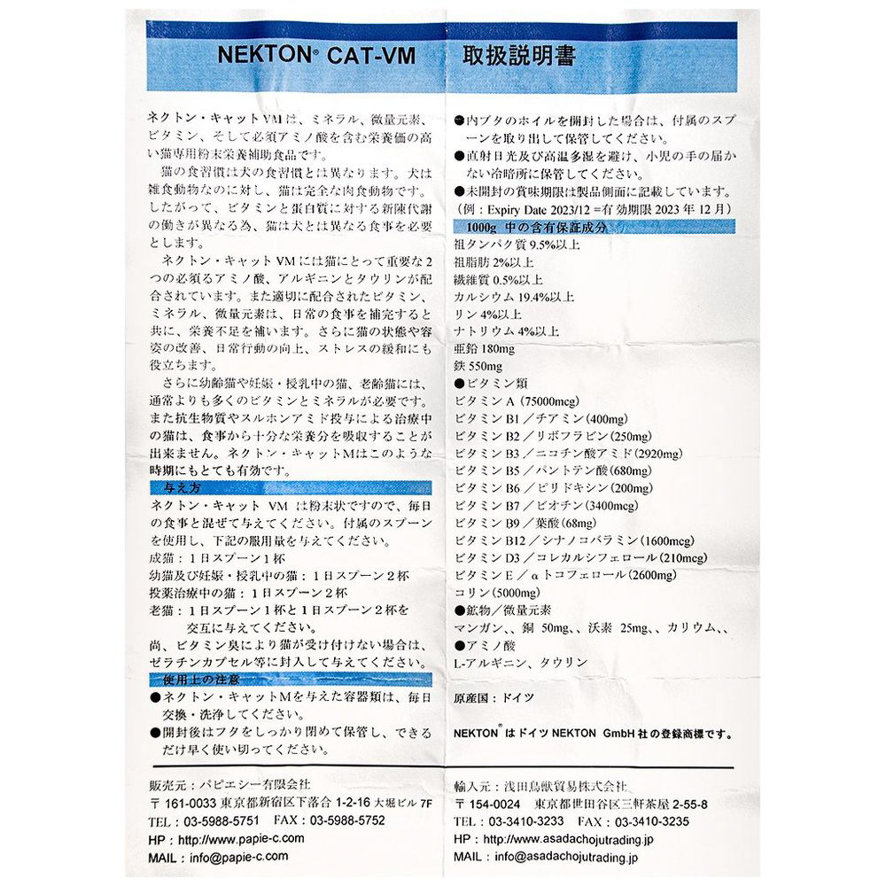 ●ネクトンキャットーMは、ミネラル、微量元素、ビタミン、そして必須アミノ酸を含む栄養価の高い猫用栄養補助食品です。