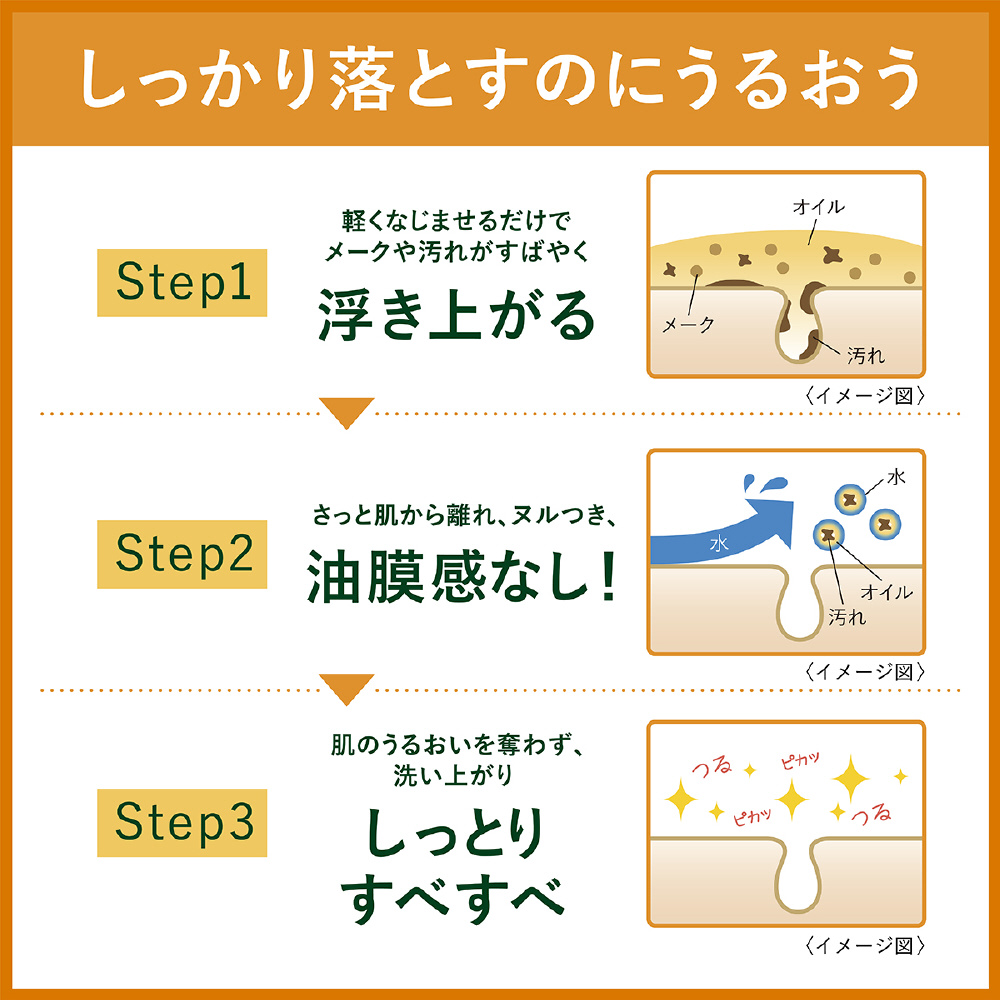 メークも毛穴汚れもすっきり落とす、うるおいクレンジングオイル。
