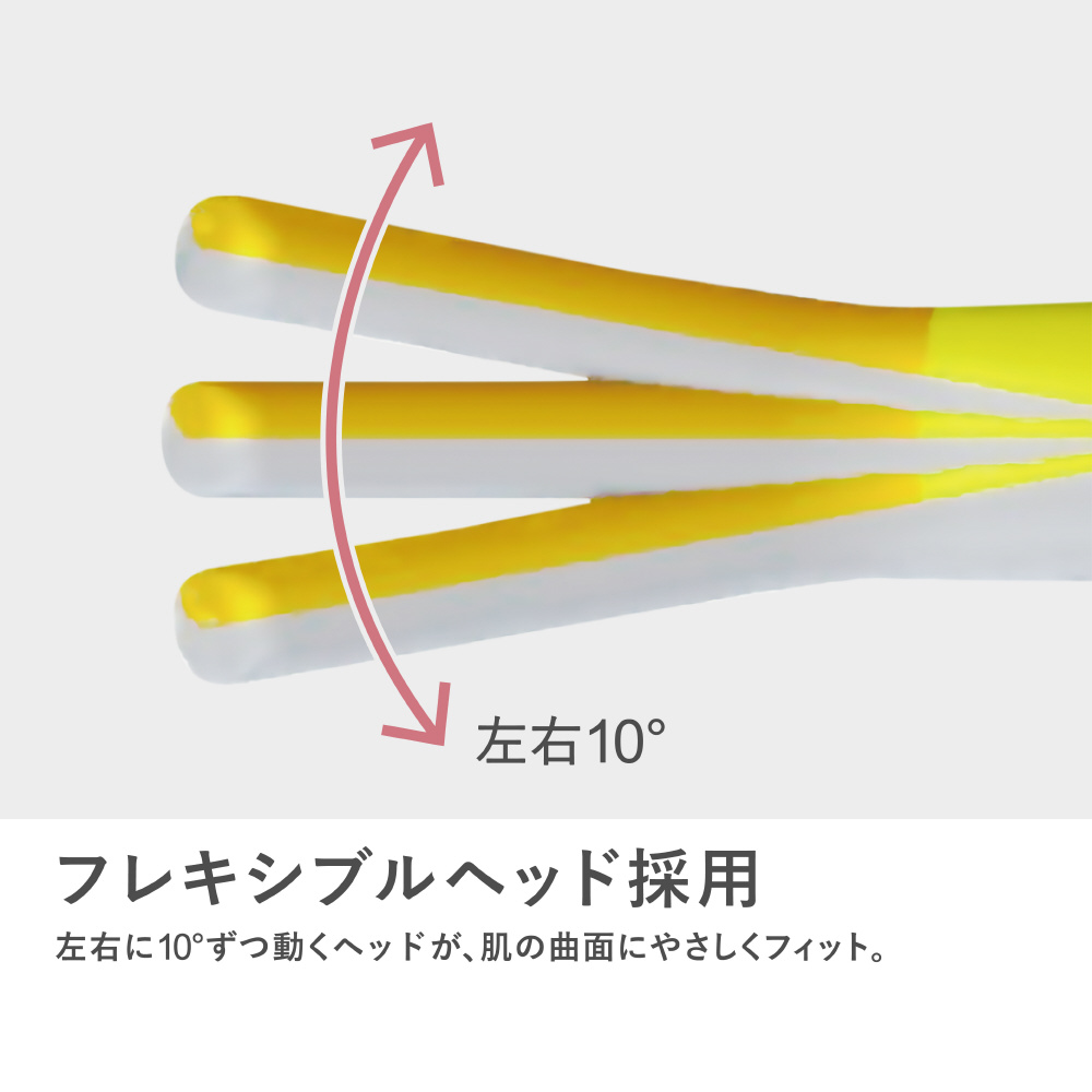 左右に10°ずつ動くヘッドが、肌の曲面にやさしくフィット