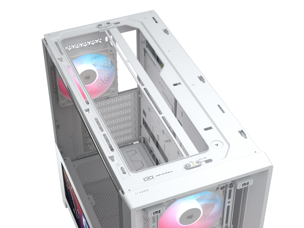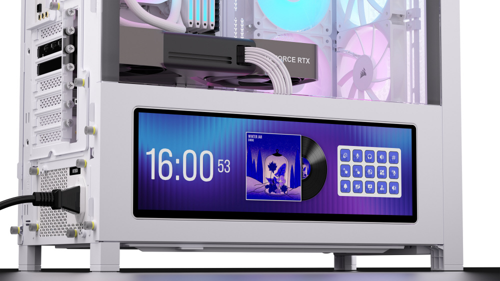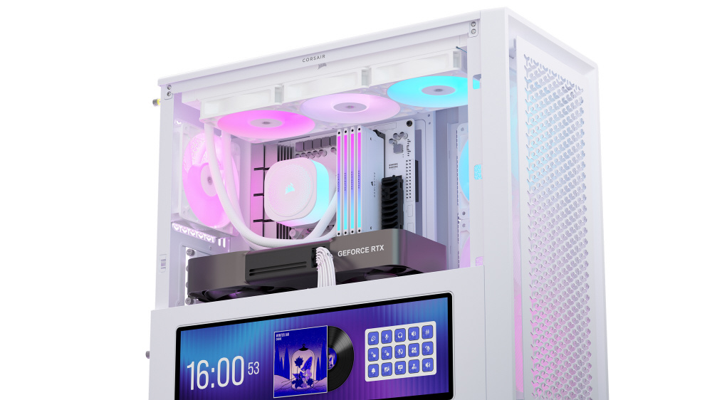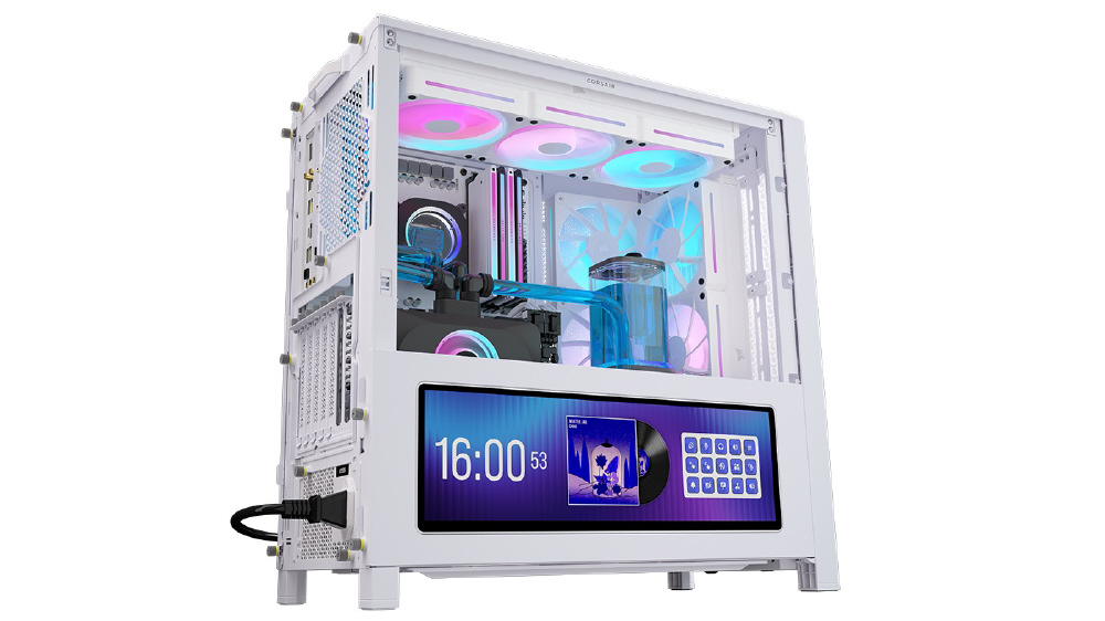 LCDタッチスクリーン「XENEON EDGE」を搭載。InfiniRailシステムを採用し4基のARGBファンを備えるミドルタワー型PCケース