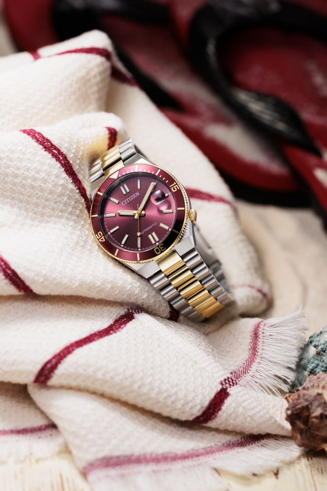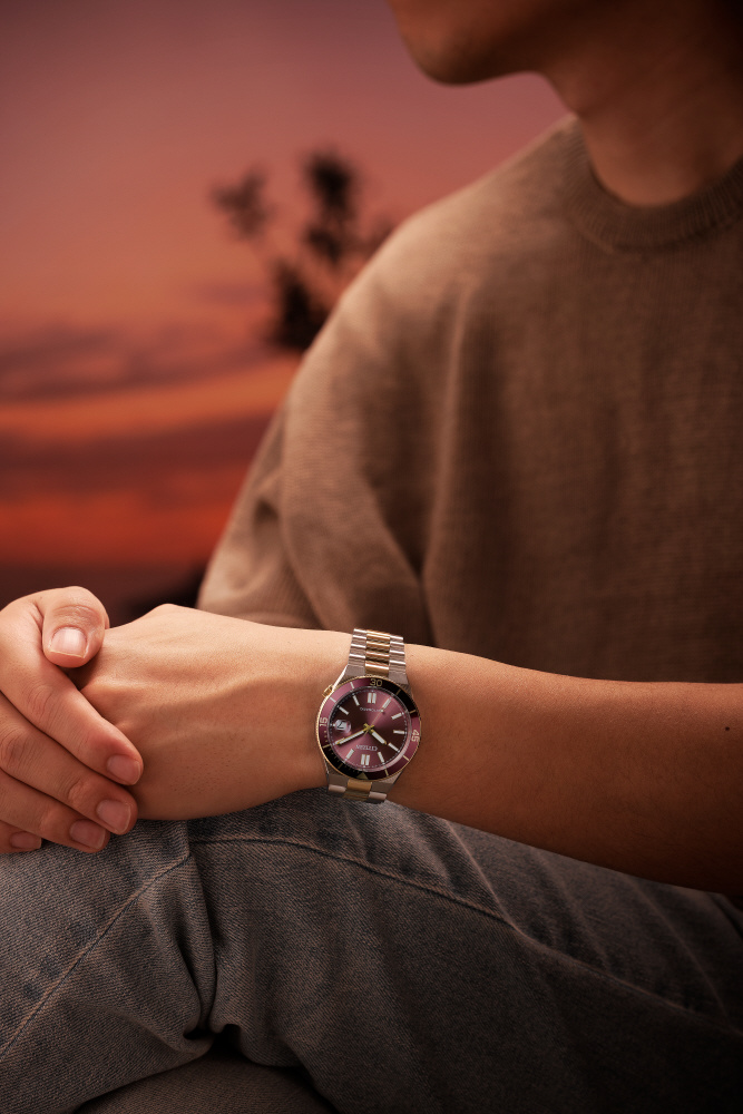 ■豊富なカラーバリエーションが人気のメカニカルウオッチ、TSUYOSAから、力強くスポーティなルックスの新作が登場。「Shore(海岸)」をテーマに、海辺で感じる躍動感をデザインに落とし込みました。
