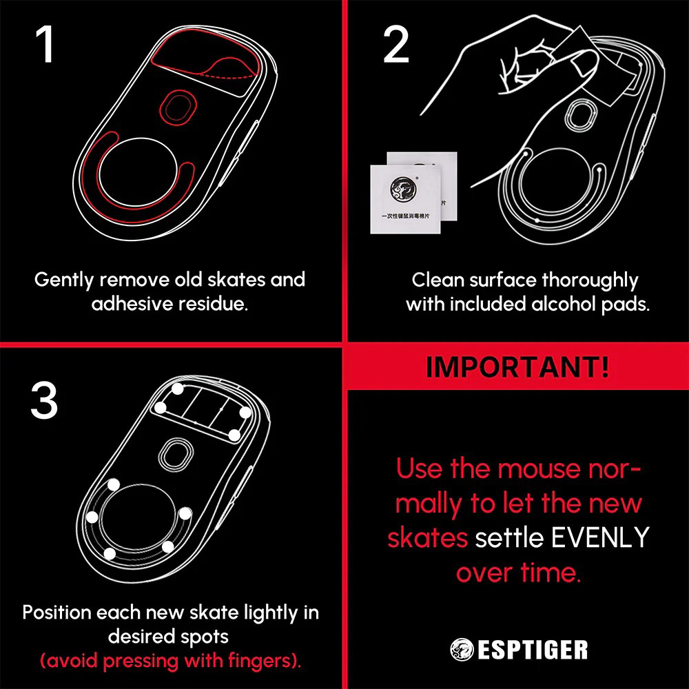 ガラス製マウスパッド向けに最適化されており、表面をスムーズかつ静かに滑走!