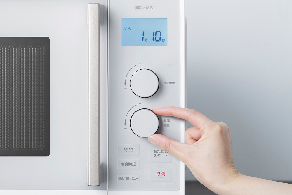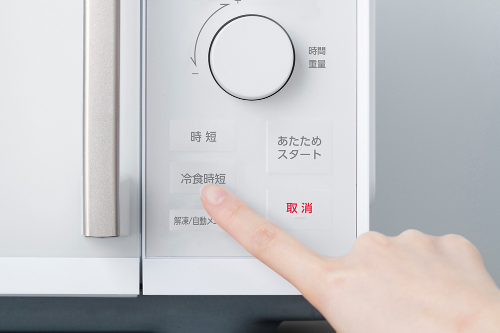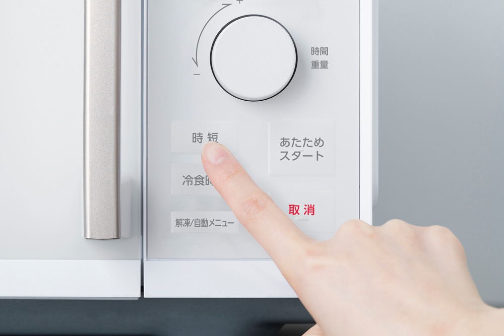 出力と時間をセットして「時短」ボタンを押すだけで、温め時間を短縮。
