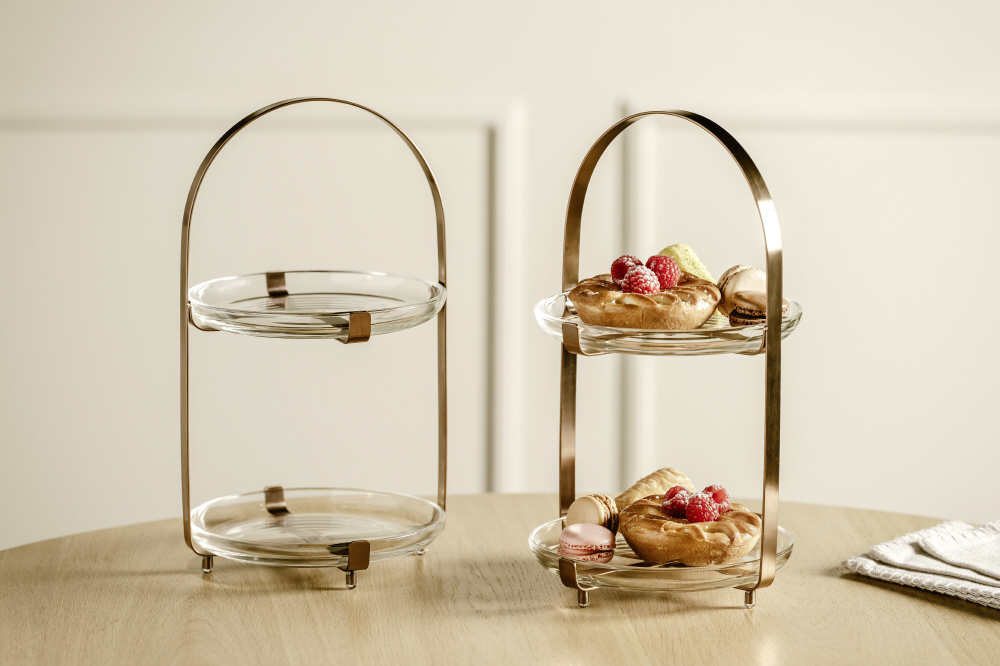 清潔感のあるデザインと使いやすさを両立した「CUCINA」サービングスタンド。軽やかな佇まいでテーブルを彩り、日常の食事やパーティーシーンをより華やかに演出します。