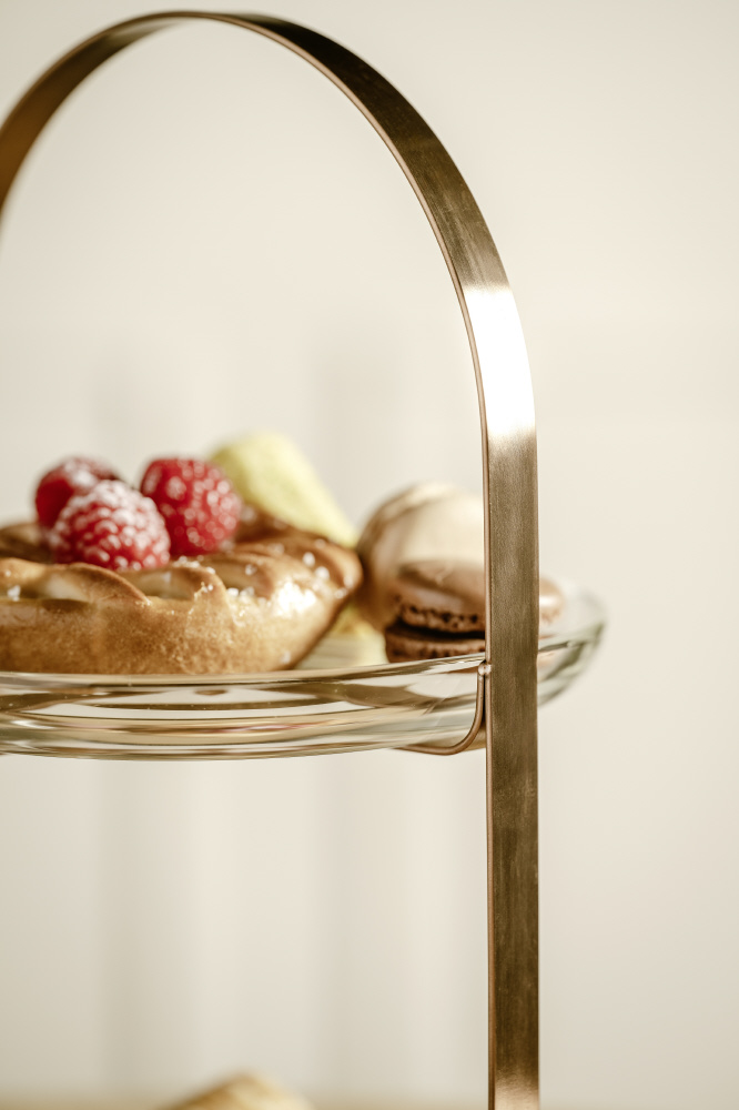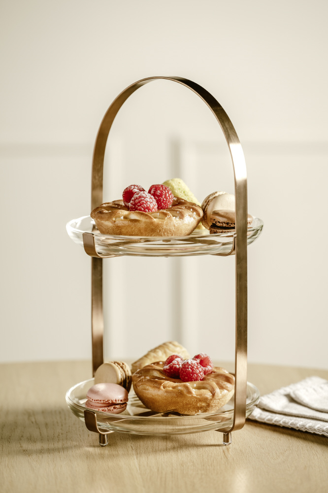 ケーキやフルーツ、軽食などを重ねて美しく盛り付けるための器具。複数段に分かれているため、テーブルスペースを有効に使え、見た目にも華やか。パーティーやおもてなしのシーンで大活躍します。取り外し可能で、お手入れも簡単です。