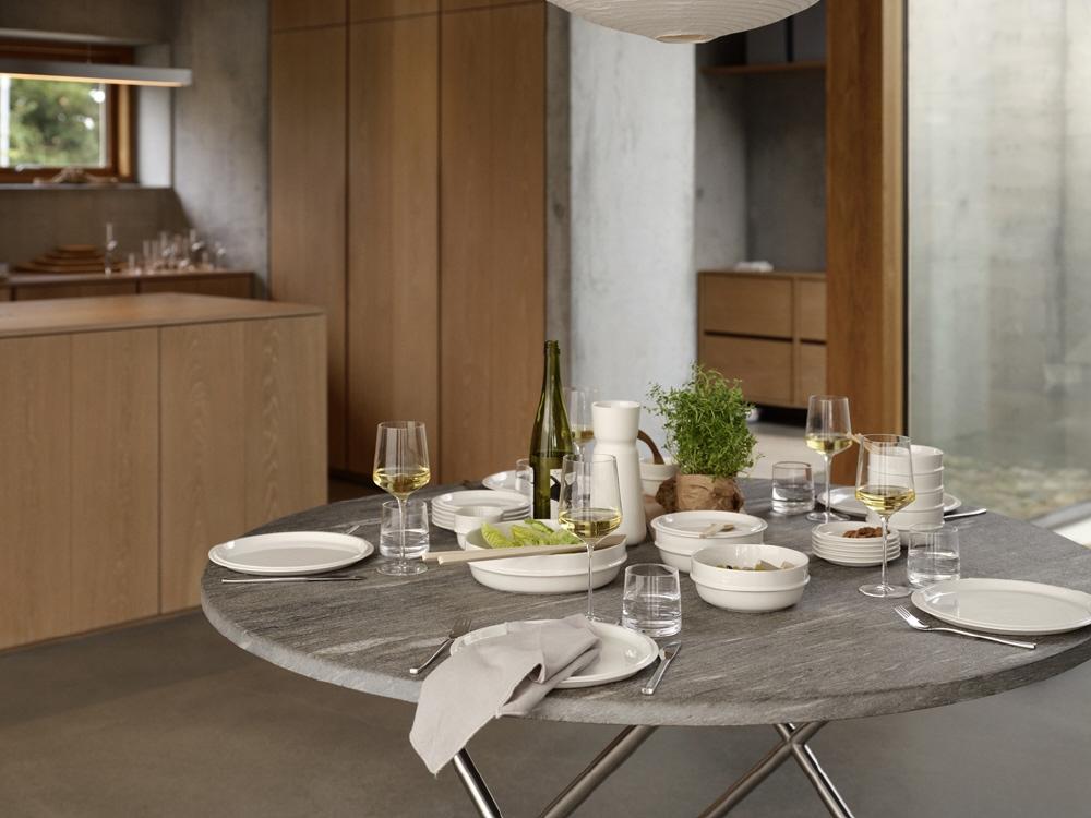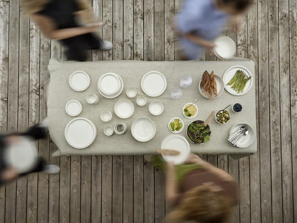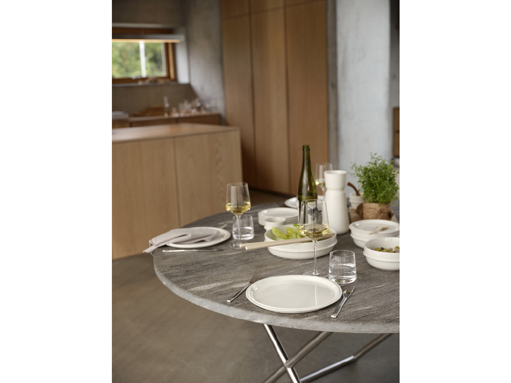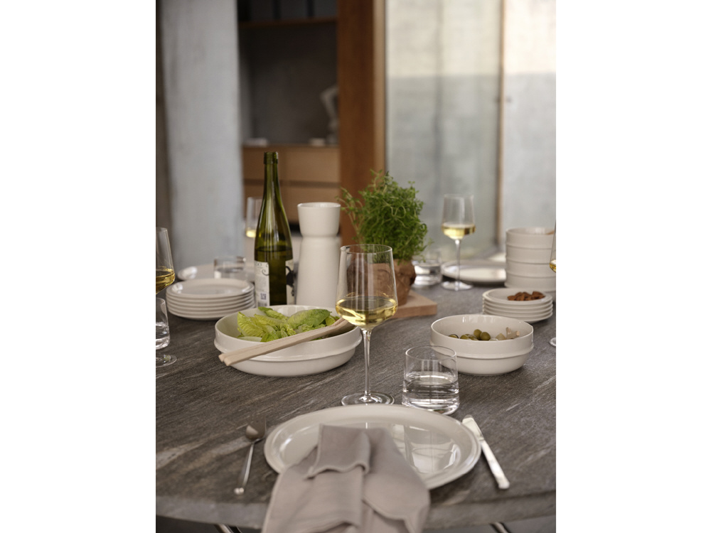 飾り気を削ぎ落としたデザインに、使いやすさと収納性を融合。テーブルの準備や片付けが簡単になるだけでなく、食器棚への収納は省スペース。毎日の食卓から特別な集まりまで、幅広く活躍する万能シリーズです。