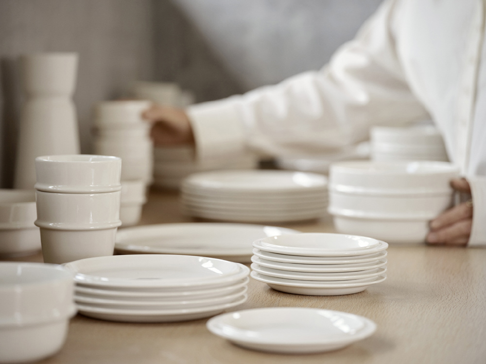 飾り気を削ぎ落としたデザインに、使いやすさと収納性を融合。テーブルの準備や片付けが簡単になるだけでなく、食器棚への収納は省スペース。毎日の食卓から特別な集まりまで、幅広く活躍する万能シリーズです。