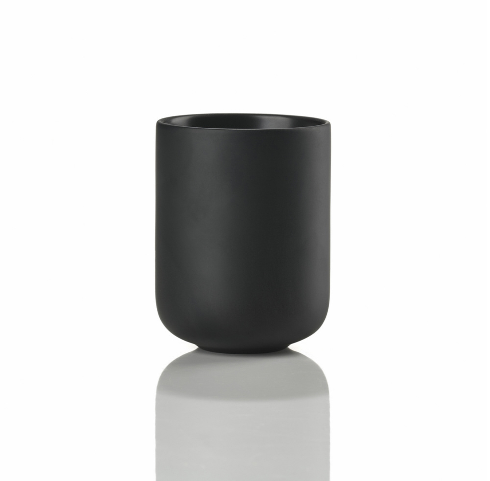 和の美意識を感じるミニマルデザインが魅力の「SENSU」シリーズ、トゥースブラシマグ(ブラック)。丸みを帯びたフォルムとマットな質感が、洗面台に落ち着きと上品さをプラスします。ストーンウェア製の重みと安定感のある円形ベースで、日常使いにも安心。歯ブラシはもちろん、メイクブラシやシェーバーなどの収納にも最適です。