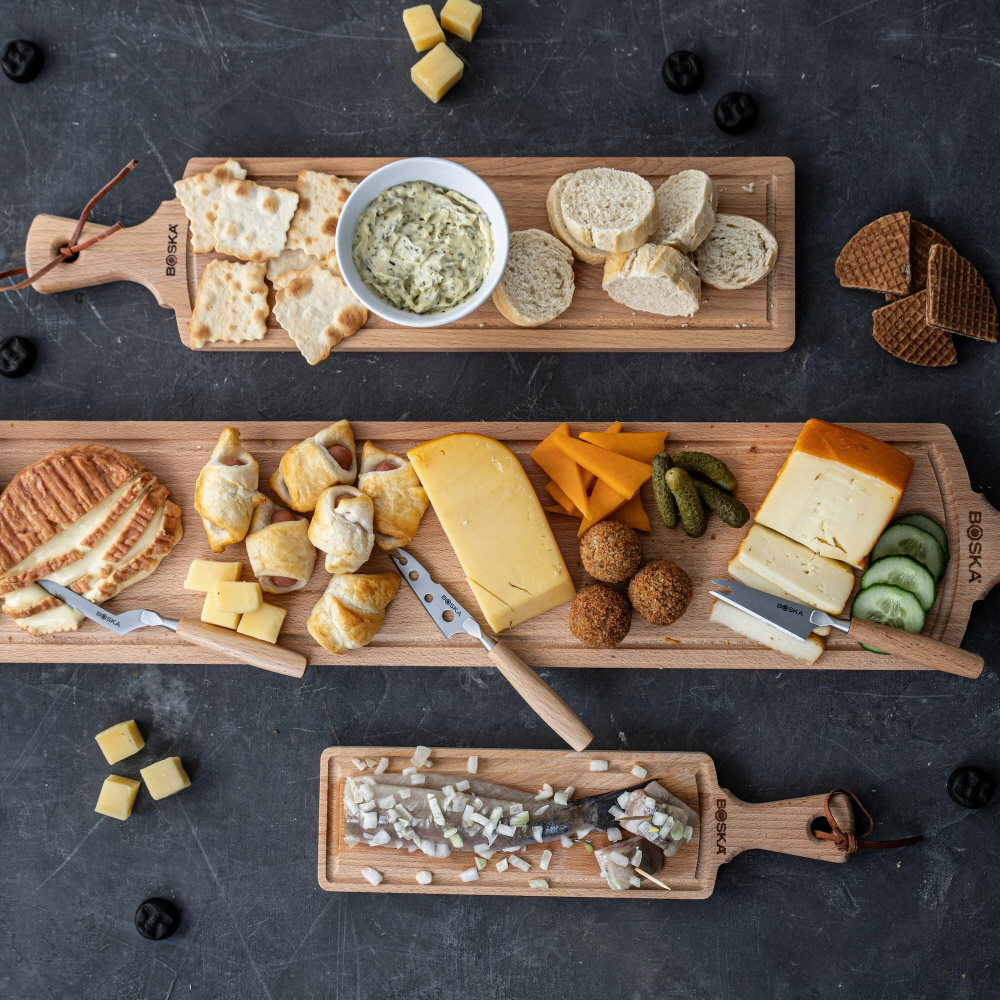 ミニチーズナイフセットで、チーズボードの盛り付けををより華やかにグレードアップしませんか?このナイフセットは、柔らかいチーズからセミハード、ハードチーズまで、あらゆる種類を手軽にカットできる、チーズ好きにとっての必須アイテム。アミーゴ・サービングボードとの組み合わせで、さらに美しいテーブルを演出します。