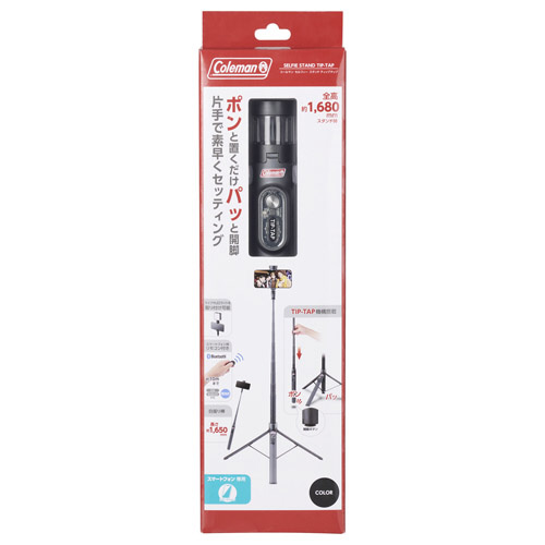 片手でポンと置くだけでスタンドが自動的に開脚する新機構搭載のセルフィースタンドが、アウトドアのメジャーブランド「Coleman(コールマン)」とのコラボモデルで登場。