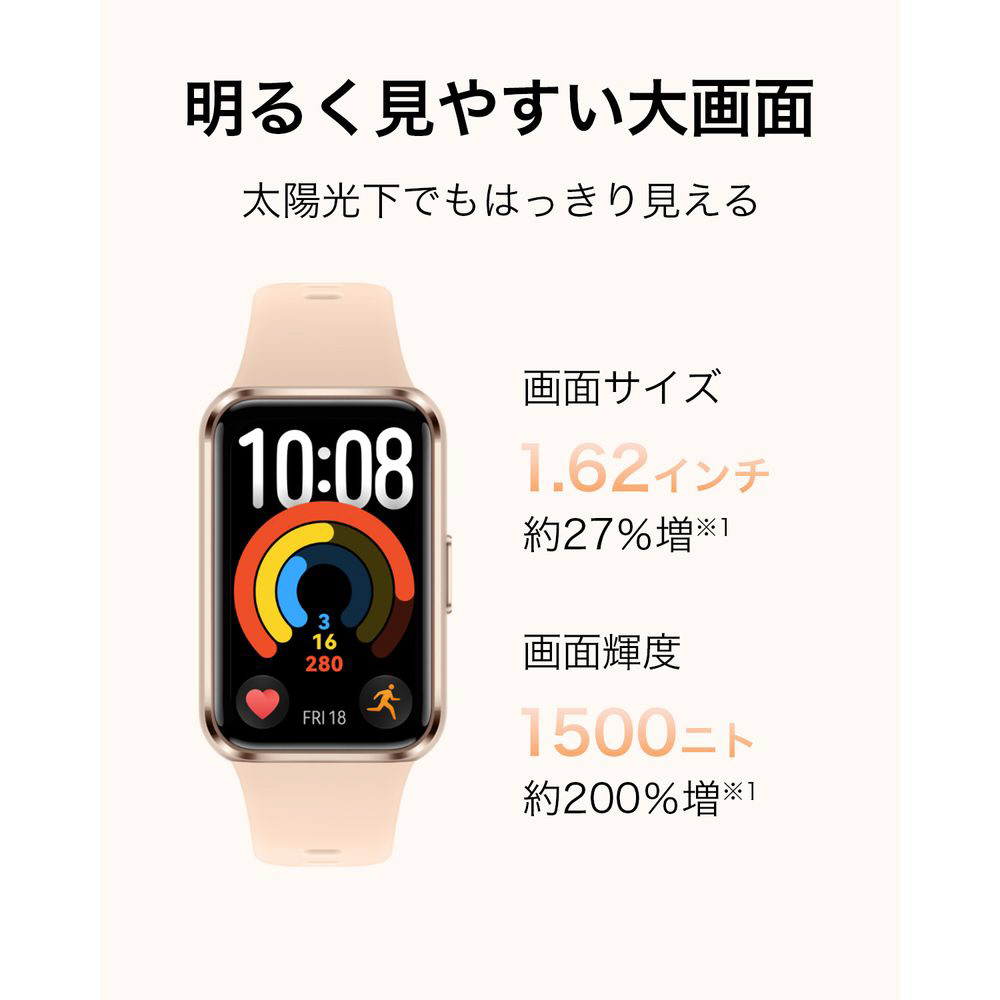 約1.62インチ、60HzのAMOLED(有機EL)ディスプレイは、画面サイズが約27%拡大し、輝度は最大1500ニトと大幅に明るくなりました。強い日差しの下でも、すべての情報が一目でくっきりと確認できます。