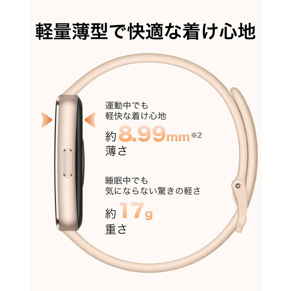 HUAWEI Band 11は重さは約17gで、着けていることを忘れてしまうほどの軽快さを提供。