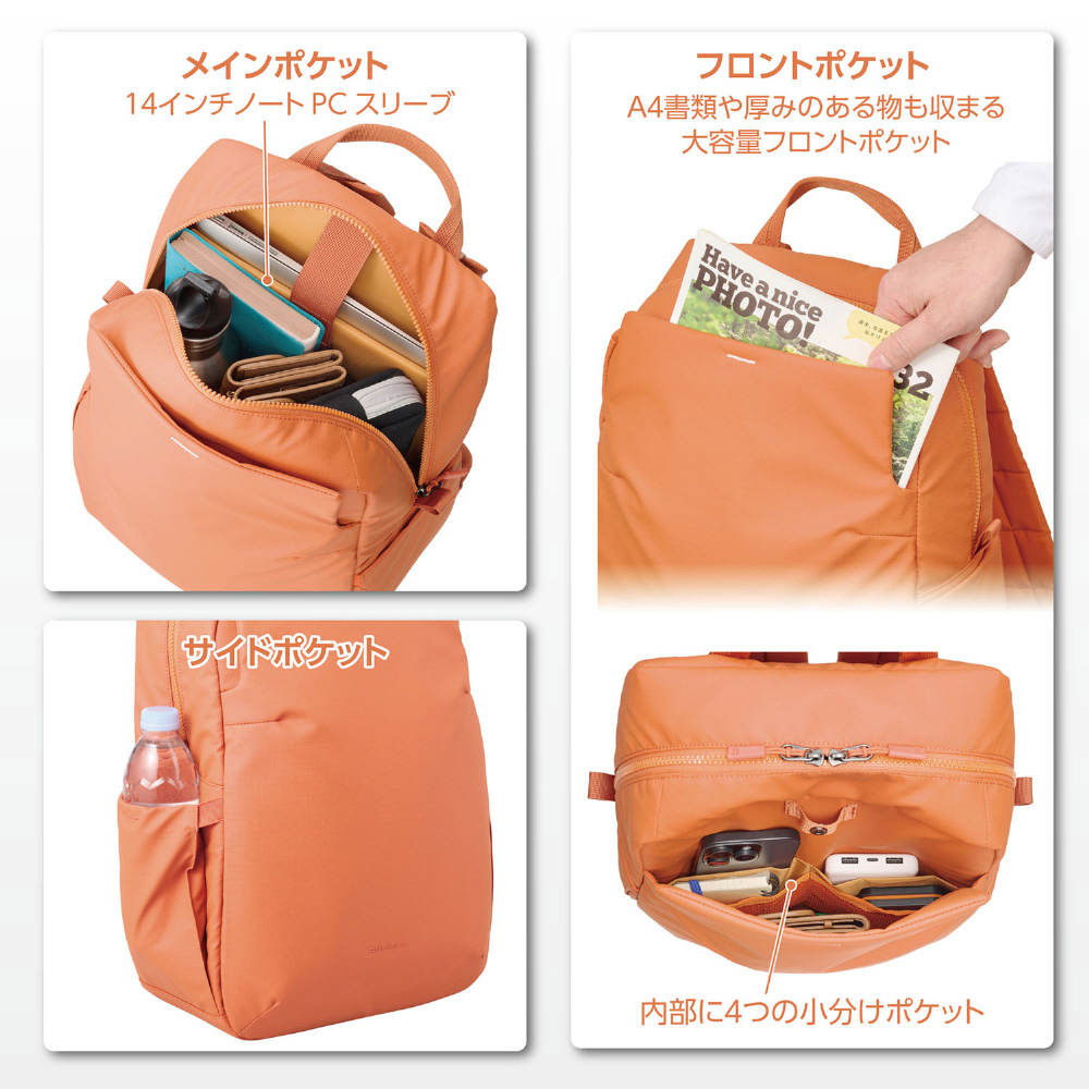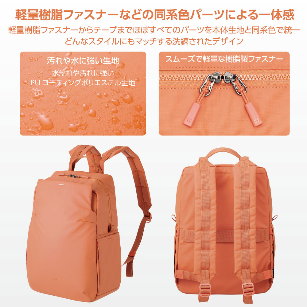 「バックパック 14」は、日常のスタイルに溶け込む都会的なシルエットと、多様なシーンに対応する柔軟性の高い収納力を兼ね備えたモデルです。