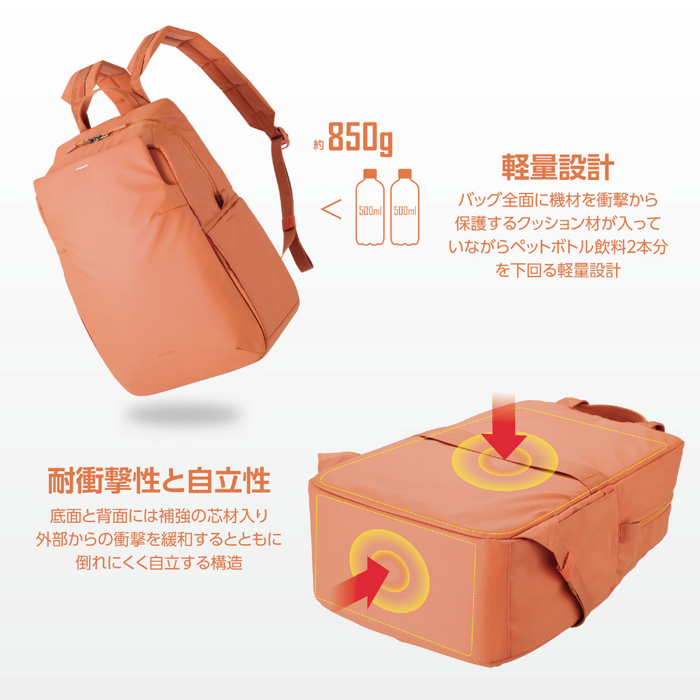 わずか約 850g の軽量設計で日常から旅先まで軽快に持ち運べます。