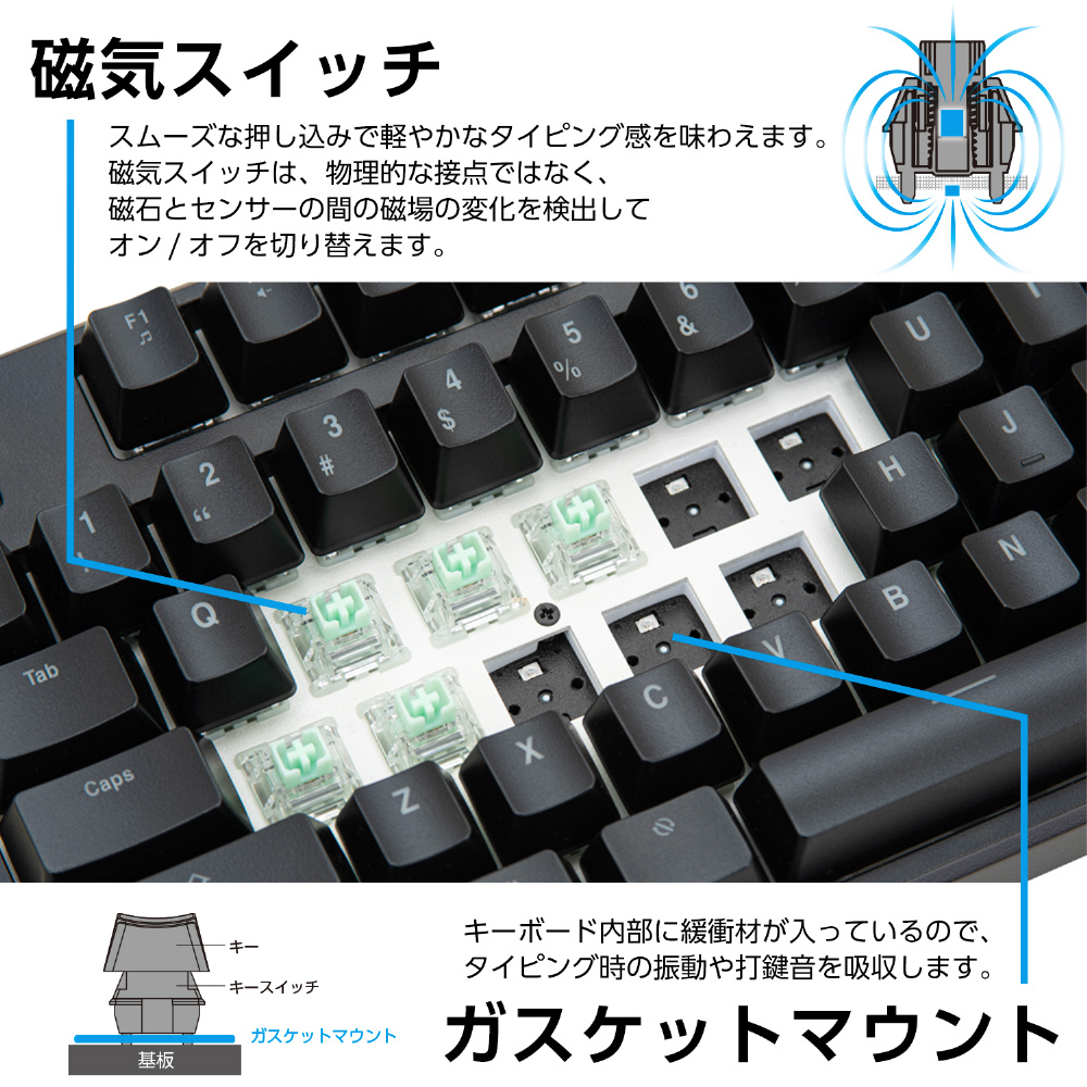 ■滑らかで軽快な打鍵感の磁気スイッチを採用。