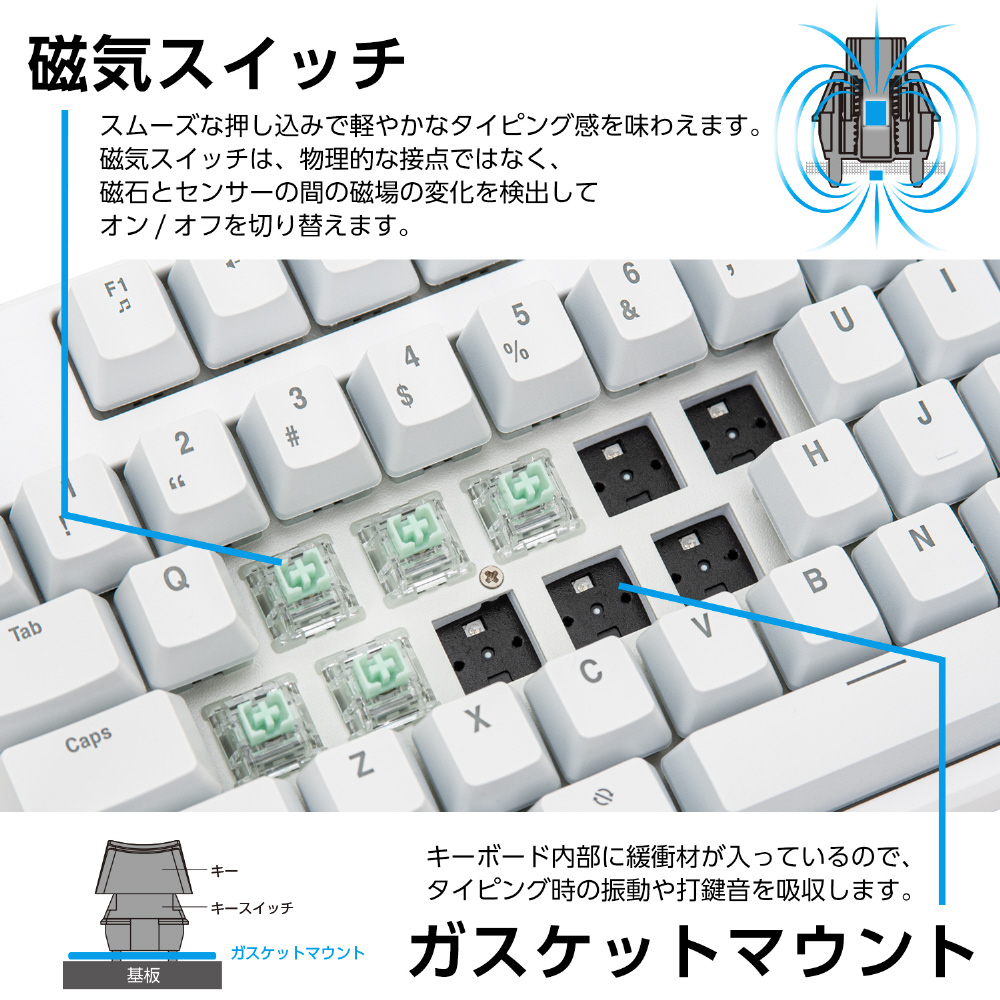■滑らかで軽快な打鍵感の磁気スイッチを採用。