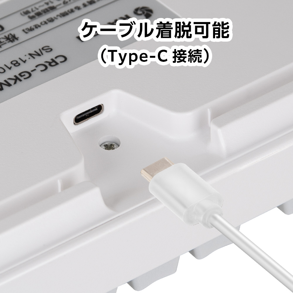 付属品 製品内容:キーボード本体、専用USBケーブル(Type-A - Type-C)、キートップ/スイッチリムーバー、取扱説明書/保証書