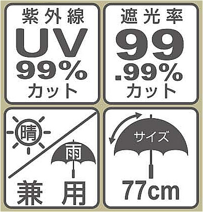 材質:傘生地の組成=ポリエステル100%(裏面PUコーティング)、親骨・中骨=グラスファイバー