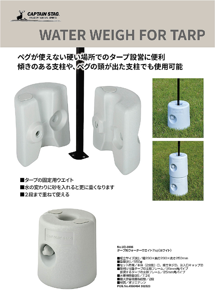 ペグが使えない硬い場所でのタープ設営に便利。